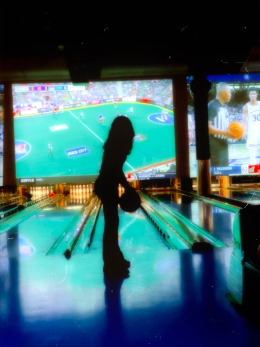 Harvey rolls a gutter ball. A slow one too. The roll won’t get itself over with. He turns around and Jill is sitting to the side, tapping out secret messages over the cracks of her splintered screen. She’s swiping left a bunch of times. Pause. One right. Now two. Jill looks up from her phone, hair crowned in jungle-colors, spirals of neon LED beaming from the ceiling above. She says, “My turn?”